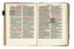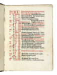 Segnatura : *8, b-m8. Testo in caratteri gotici, su doppia colonna, su 31 righe più il titolo. Graziose iniziali in legno e marca tipografica xilografata al verso del colophon. Allentato il primo fascicolo, con uno strappetto restaurato alla carta l8 e altri minimi difetti. Legatura veneziana della metà del XVI secolo in marocchino, con piccolo timbro dorato di San Giovanni Battista fanciullo al piatto anteriore e iscrizione Sor Cherubina di Mercurii a quello posteriore, entrambi entro elaborate cornici concentriche. Presente uno dei due fermagli ; dorso a 3 nervi e taglio laterale goffrato. Mancanze alle cuffie e difetti alle cerniere, abrasioni ai piatti. Entro custodia moderna con titoli in oro al dorso. Annotazione di cinquecentesca mano al foglio di guardia anteriore. (1)Raro esemplare, con il taglio laterale lavorato a rullo, quasi identico a quello utilizzato da Agnese Binder a Venezia negli anni Trenta del Cinquecento. IGI 8163 ; GW M36333.