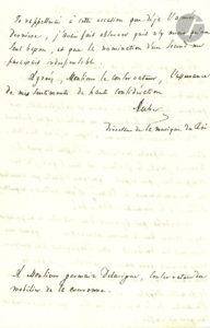 Daniel François Esprit AUBER (1782-1871). L.A.S., 4 novembre 1840, à Germain Delavigne, conservateur du mobilier de la Couronne ; 2 pages in-8.{CR}Comme « directeur de la musique du Roi », il envoie et commente les factures et états des...
