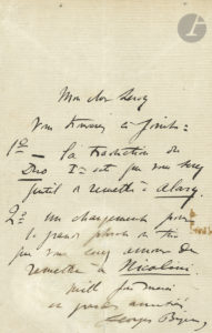Trianon le livret d’Ivan IV, opéra laissé inachevé par Bizet.{CR}Il lui envoie « 1° – la traduction du Duo Ier acte que vous serez gentil de remettre à Alary [directeur de chant au Théâtre Italien]. 2° un changement pour la grande phrase du trio que vous serez amour de remettre à Nicolini [ténor] »…