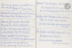 avec documents collés).{CR}Exceptionnel cahier avec paroles de chansons réalisé pour l’émission télévisée Le Grand Échiquier.{CR}C’est pour l’émission télévisée Le Grand Échiquier de Jacques Chancel, diffusée en direct depuis le studio des Buttes-Chaumont le 6 mars 1974 (prévue le 13 février, mais reportée en raison d’une grève), que Brassens a réalisé ce cahier, craignant de mal se souvenir de certaines paroles. Il a copié, d’une grande écriture, à l’encre ou au feutre bleu, les paroles de plusieurs chansons. Son ami et secrétaire Pierre Onteniente, placé entre les caméras, tenait le cahier et en tournait les pages.{CR}Le cahier contient les paroles des chansons suivantes (sans les titres) :{CR}* Le Moyenâgeux, complet des 8 couplets (p. 1 à 8) : « Le seul reproche au demeurant{CR}Qu’aient pu mériter mes parents »… [elle ne sera finalement pas chantée] ;{CR}* Stances à un cambrioleur, 1er vers de chacun des 10 couplets (p. 10-11) : « Prince des monte-en-l’air »… ;{CR}* À l’ombre des maris, 1er vers de chacun des 12 couplets, les deux premiers vers pour les strophes 9, 10 et 12 (p. 10-11) : « Les dragons de vertu n’en prennent pas »…. ;{CR}* Le Temps passé, les deux premiers vers du 1er et 3e couplet, et intégralité du dernier couplet (p. 12) : « Dans les comptes d’apothicaire{CR}Vingt ans c’est un’ somme de bonheur »… :{CR}* La Non-demande en mariage, début (2 vers) de chacun des 6 couplets (p. 14) ;{CR}* La Mauvaise Herbe, début et fin de 3 couplets : « Quand l’jour de gloire est arrivé{CR}La mort faucha les autres{CR}Ça vous dérange que j’vive un peu »…(p. 15) ; {CR}* Mourir pour des idées, début de 6 couplets, 2 vers pour les deux derniers (p. 16) : « Mourir pour des idées »… ;{CR} * Le Roi des cons, début de 8 couplets (p. 17) : « Non certes »….{CR}À la suite, on a collé des coupures de presse annonçant ou commentant l’émission ; et un laissez-passer pour l’accès aux studios.{CR}Référence : Le Grand Échiquier Georges Brassens (DVD, INA LCJ Éditions 2021).