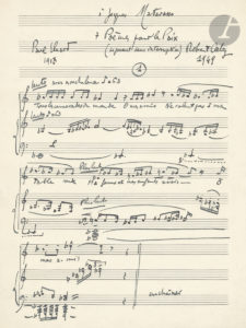 Robert CABY (1905-1992). 2 manuscrits musicaux autographes signés, Sept petits poèmes pour la Paix de Paul Eluard (1918), 1949 ; 7 pages in-fol. (30,5 x 23 cm) au crayon, et un cahier avec titre et 7 pages in-fol. à l’encre.{CR}Cycle de...
