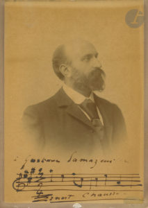 Gustave Samazeuilh » avec citation musicale de 2 mesures en la majeur à 3/4.{CR}La photographie a été prise lors du séjour de Chausson à Fiesole (1895-1898).