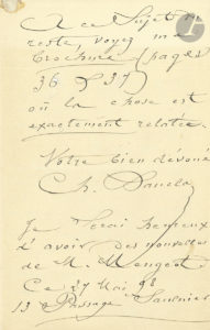 Masset. C’est en 1840 que je fis entendre avec mon frère ma 1re Symphonie concertante et non en 1837 »…{CR}On joint une L.A.S. de Jacques THIBAUD, 22 octobre 1923, à Tiarko Richepin et Albert Wolff, pour un comité d’honneur.