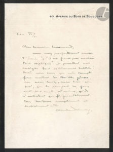 Claude DEBUSSY (1862-1918). L.A.S., 30 juin 1911, à René Lenormand ; 1 page in-8 à son adresse (deuil).{CR}« Vous avez tout à fait raison d’écrire “qu’il ne faut pas vouloir tout expliquer” et pourtant vos analyses sont extrêmement...