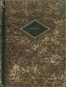 palmettes dorées et le nom J. DEMEUR en lettres dorées (rel. usagée).{CR}Le flûtiste belge Jules Demeur enseigna la flûte au Conservatoire royal de Bruxelles, où il fut un temps principale flûte à l’Opéra royal ; il épousa en 1847 la cantatrice Anne Charton (1824-1892), et suivit dès lors la brillante carrière de sa femme, Mme Charton-Demeur. Il a publié à Bruxelles chez Lahou, vers 1840, deux opus : une Fantaisie et variations pour la flûte sur des motifs favoris de La Figurante de Clapisson, et une Fantaisie pour la flûte sur des motifs de La Somnambule de Bellini.{CR} Le recueil comprend six partitions imprimées. Louis Drouet : Ma Fanchette est charmante, op.21 n°7 (avec signatures des éditeurs Terry et Simon Richault), les 3 premières de ses Cent Études op.31, Robin Adair op.29 (partie de flûte seule) ; Jean-Louis Tulou, Concerto op.25 n°4 (partie de flûte seule) ; Charles Nicholson, A Favorite Portuguese Air ; T. Bucher, Introduction & Variations sur Rossini’s Air “Aurora che sorgerai” (partie de flûte seule).{CR} Les deux manuscrits de Demeur sont les parties de flûte solo de deux fantaisies et variations pour flûte avec un accompagnement d’orchestre. Ils ne portent pas de titre, mais correspondent peut-être aux deux opus cités ci-dessus. Le premier (5 pages in-4, sur papier à 12 lignes), comprend une introduction puis 5 variations. Le second (4 pages in-fol., sur papier à 16 lignes) est marqué « Flute Principale » ; il commence par un Adagio, suivi du Thema et de 6 variations, et s’achève par un final.{CR} Provenance : collection du violoniste Henri Vieuxtemps.