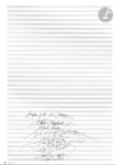 2008. La page est écrite pour grand orchestre et les deux personnages Lui et Lei qui chante : « Te lo diro il perché »…. La page est notée à l’encre de Chine sur papier Star à 36 lignes, avec des corrections à l’encre rouge et à l’encre violette ; elle compte 4 mesures.{CR}Au dos, dédicace : « 1ère esquisse p. 131 de Passion. A Hughes Tenenbaum, Amitiés lyriques […] Pascal Dusapin 2 sept. 2008 ».