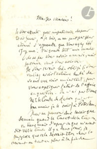 l’état de l’affaire en question. Je n’ai pas trouvé Mr le Comte de Redern qui est (du moins je le crois) à Postdam ». Il ne sait quand aura lieu le concert de la Cour, « tout au plus à la fin de la semaine »…{CR}On joint un billet a.s. à M. Delisse, Paris 2 janvier 1854 (demi-page in-8 à son chiffre), l’invitant à dîner chez le restaurateur Durand, place de la Madeleine.