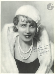 MUSIC-HALL. 6 photographies dont 2 dédicacées.{CR}Luis Mariano (22,5 x 17 cm, dédicacée : « à Yasmina avec toute ma vive sympathie Luis Mariano »), Mistinguett (39 x 29,5 cm, dédicacée : « Pour René avec ma sympathie Mistinguett...