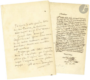 MUSICIENS. 4 L.A.S.{CR}Amédée de Beauplan (à Auguste Panseron), Henri Berton (1837, à Émile Mellinet ; portrait joint), Pauline Duchambge (à M. Le Sage ; portrait joint), Jacob Rosenhain.