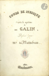 MUSIQUE. Manuscrit : Cours de musique d’après le système de Mr Galin, professé par Mr de MAINEBEAU, Bordeaux 1823 ; un vol. in-8 de 11 pages, reliure basane brune à grain long (rel. frottée, coins émoussés).{CR}Manuscrit de ce cours de...