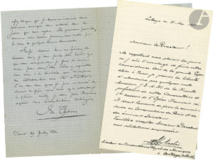 MUSIQUE. 10 lettres, la plupart L.A.S.{CR}A. Bourgault-Ducoudray, Robert Bernard (2 cartes a.s.), Gustave Charpentier (1935, l.s. à A. Acremant, au sujet de son procès contre Salabert), J.D.H. de La Fuente (à Ambroise Thomas, 1892), F.G. Nicolai...