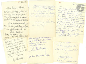 Maison des Artistes, où elle accueillit quantité de musiciens.]{CR}Georges Auric, Theodore Bloomfield, Alexandre Brailowsky, Renato Capecchi (5), Oralia Dominguez, Mark Elyn, Ada Finzi (7), Anatole Fistoulari, Maureen Forrester, Mme Z. Francescatti, Heinz Freudenthal, Alceo Galliera, Vladimir Golschmann, Ettore Gracis, Monique Haas, Abraham Kaplan, Louis Kentner (avec musique), Paul Kletzki (5), André Kostelanetz, Olga Koussevitzky, Maria Krips, Nikita Magaloff, Jean Martinon (3), Yehudi Menuhin, Francesco Molinari-Pradelli, Paolo Montarsolo, Yolande Paray (3), Germaine de Rothschild, Phyllis Curtin, Mme Cl. Curzon (3), Michel Schwalbe (4), Isaac Stern (et sa femme Vera, plus cartes de vœux), Alfred Wallenstein, Peter Wallfisch, etc.