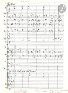 Maurice OHANA (1914-1922). Manuscrit musical autographe signé, Livre des Prodiges ; 1 page in-fol. (35 x 26 cm).{CR}Page extraite de la partition d’orchestre du Livre des Prodiges (1978), numérotée 46 avec le titre Alecto. Elle est...