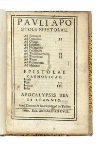 PAULI APOSTOLI EPISTOLAE... Brix : apud Damianum & Iacobum philippum de Turlinis fratres, 1537. — (Al colophon:) Brixae : apud Damianum & Iacobum philppum fratres de Turlinis, mense Mai 1537) — In-8° (mm 158x103).
