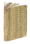 Carte 112. Frontespizio entro cornice tipografica, capilettera xilografici, un'incisione su metallo al verso della carta A2 dei Santi Pietro e Paolo che sorreggono la Sacra Sindone e una marca tipografica in legno al verso della carta O8. Entrambe presentano forellini di tarlo, maldestramente restaurati, con lievi perdite di inciso ; tarlature marginali ad altre carte, gore e fioriture sparse. Esemplare profusamente postillato. Legatura moderna in mezza pergamena, con piatti in carta decorata e sguardie rinnovate ; un restauro al margine inferiore del dorso. Ex-libris in carta applicato al contropiatto anteriore. (1)