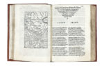 Carte 226 ; 167. Frontespizio impresso a due colori, incisioni xilografiche in principio di ogni libro. Alcune carte mal rilegate, senza perdite. Piccolo lavoro di tarlo nel margine inferiore esterno della seconda parte, senza perdite. Assente l'ultima carta bianca della seconda parte. Legatura moderna in pieno vitello con cornici dorate ai piatti e titolo e decorazion in oro ai comparti del dorso. Sguardie in carta marmorizzata. (1)