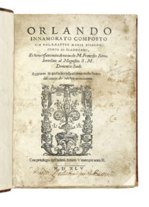 BOIARDO Matteo Maria, Orlando innamorato composto gia dal. s. Matteo Maria Boiardo conte di Scandiano... 1545. — (Al colophon:) Stampati nuovamente in Venetia : per li heredi di Lucantonio Giunta, 1545 nel mese di giugnio. — In-4° (mm 213x150)....