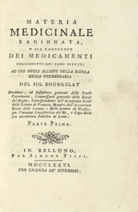 BOURGELAT Claude, Opere veterinarie del sig. Bourgelat... volume primo (-ottavo). — In Belluno : per Simone Tissi, 1776-1779. — 8 volumi in-8° (mm 205x140).