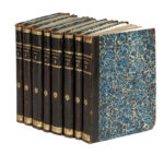 Con illustrazioni fuori testo ripiegate. Copia in buono stato conservativo. Legatura coeva in mezza pelle con punte e piatti in carta decorata, titolo in oro al dorso. Ex-libris di precedente proprietario al contropiatto anteriore di ciascun volume. Collazione disponibile su richiesta. (8)Prima edizione italiana, realizzata a partire dall'originale Eléments de l'art vétérinaire edito tra il 1755 e il 1769. L'opera, arricchita da un importante apparato incisorio, include capitoli dedicati alla ferratura del cavallo e alla sua anatomia, ma anche parti sulla fasciatura degli animali e le malattie del bestiame. Claude Bourgelat, chirurgo veterinario francese, è noto per aver fondato (nel 1762) la prima scuola veterinaria d'Europa ed è considerato il fondatore della medicina veterinaria. La sua autorevolezza scientifica gli valse una collaborazione con Diderot per la redazione dell'Encyclopedie. Brunet VI,7699.