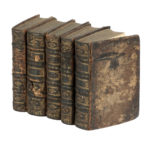 Antiporta al principio del primo volume. Volumi con bruniture, anche intense, alle carte. Legatura coeva in piena pelle con titoli e decorazioni in oro ai comparti del dorso, tagli marmorizzati. Alcune mancanze ai piatti e ai dorsi. Ex-libris di precedente proprietario al contropiatto anteriore. (5)-