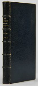 Edition originale de ces reuvres poétiques d’un familier de Gaston d’Orléans : Portraits, mascarades et deux livres de chansons. La pièce la plus célèbre est l’histoire de la Joconde. Charnières légèrement frottées sinon bel exemplaire joliment relié. Ex libris Robert Hoe.