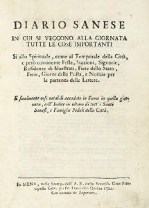 GIGLI Girolamo, Diario sanese. — In Siena: presso Francesco Quinza, 1722. — In-4° (mm 210x155). — Pagine [2], 241, 1 bianca. —