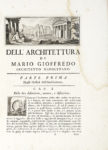 GIOFFREDO Mario, Dell'architettura. — Napoli, 1768. — In folio (mm 535x390).