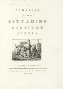 GIUSTINIAMI Girolamo Ascanio, Pensieri d'un cittadino sul fiume Brenta.— In Padova : nella stamperia Penada, 1786. — In folio (mm 308x220). — Pagine 64, CX, 2 bianche con 7 tavole ripiegate fuori testo.