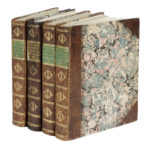 Restaurato l'occhietto del secondo volume. Sporadiche fioriture e macchioline, nel complesso buona copia. Legatura rimontata in mezza pelle con punte e piatti in carta marmorizzata, titoli in oro su tassello al dorso, fregi dorati sempre al dorso. Alcune mancanze nella carta dei piatti al primo volume, secondo rilegato con un diverso tipo di pelle e carta, ma identici fregi. Timbro di precedente collezione (ormai non più leggibile) all'occhietto di volumi 1,3 e 4, insieme a ex-libris cartaceo applicato. (4)