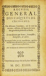 CAQUETS DE L'ACOUCHEE (Les). RECUEIL GENERAL DES CAQUETS DE L'ACOUCHEE, ou discours facétieux, où se voit les mreurs, actions et façons de faire des grands et petits de ce siècle. Imprimé au temps de ne se plus fascher, (Paris), 1624. In-8 de...
