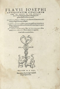 IOSEPHUS Flavius, Antiquitatum iudaicarum libri XX. Basileae: s.e. 1554. — (Al colophon :) Basileae: per Hier. Frobenium et Nic. Episcopium, 1554 mense Martio. — In folio (mm 325x210). — Pagine [8], 886, [34].