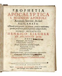 KIRCHER Heinrich, Prophetia apocalyptica S. Joannis apostoli... — Coloniae Agrippinae : apud Petrum Alstorff, 1676. — In-4° (mm 200x151). — Pagine [8], 100, 176.