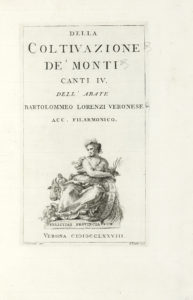 LORENZI Bartolomeo, Della coltivazione de' monti canti IV. Verona : s.e., 1778. — In-4° (mm 231x154). — Con un ritratto in calcografia fuori testo. — Ottima copia.