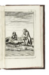 Primo volume privo dell'ultima carta di testo, con la tavola ripiegata strappata (senza perdite), per il resto buono stato. Legatura coeva in piena pelle con titoli e impressioni in oro al dorso, tagli rossi. Sguardie in carta marmorizzata. Mancanze lungo cuffie e cerniere.