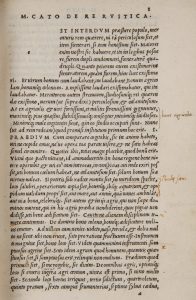 PREMIERE EDITION ALDINE, elle est rare et offre la plus célèbre réunion de textes sur l’agriculture et sur la vie à la campagne donnée par les auteurs classiques. Composée entièrement en italique, elle s’ouvre par une préface de Pierre Bembo et s’orne de quelques gravures sur bois dans le texte. L’ouvrage est largement annoté en marges avec des corrections de texte manuscrites à l’époque. Petites restaurations marginales à 3 feuillets, le premier plat est détaché. Le 34ème feuillet blanc n’est pas présent dans cet exemplaire. Ex libris Donald C. Bain. (Renouard, Alde, 66 n°2) (Adams S 805).