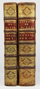 VARILLAS (ANTOINE). HISTOIRE DE HENRY TROIS. Paris, Claude Barbin, 1694. 3 parties en 2 volumes in-4°, veau brun, dos à nerfs orné, tr. mouchetées (Reliure de l’époque)