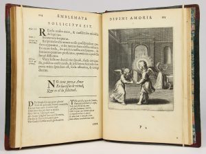Seconde édition de ce beau livre d’emblèmes, dont la première avait paru en 1615. L’ouvrage contient le texte latin, espagnol, hollandais et français, placé sous 60 emblèmes ravissants, montrant deux amours dans des situations diverses, ces derniers dessinés par Otto Vaenius (1556-1634), fondateur et maìtre d’une école de peinture, dont Rubens fut l’un des élèves les plus assidus. Dos passé, frais intérieurement. Exemplaire du lyonnais Pierre Tisseur (tampon au titre). (Landwehr, 702).