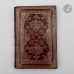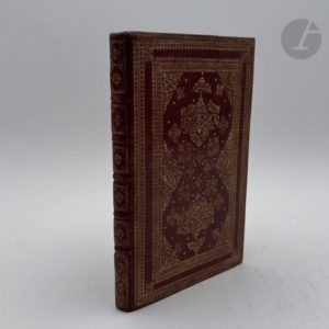 [MAZOT (François)]. Le Tableau de la croix représenté dans les ceremonies de la Ste messe, ensemble le tresor de la devotion aux soufrances de Nre S. I. C. le tout enrichi de belles figures. Paris : F. Mazot, 1651. — In-8, maroquin rouge, riche décor doré aux petits fers sur les plats, composé d'un large encadrement de roulettes et filets, écoinçons remplis de fers filigranés et délimités par des filets droits, composition aux petits fers bordé de points et entourant un motif quadrilobé au centre, dos à nerfs orné, tranches dorées (reliure de l'époque). Très bel ouvrage entièrement gravé constituant un recueil de méditations dévotes sur les Mystères de la Passion. Notre exemplaire se compose d'un titre, d'une dédicace au Marquis de Chateauneuf par Mazot, d'un portrait du dédicataire Charles de l'Aubépine gravé par Willem de Geyn, d'une gravure pour les Litanies, de 35 belles scènes représentant sur le haut les divers moments de la Passion et sur le bas la progression de la messe, avec les oraisons correspondantes en regard, de 4 planches contenant la litanie des Saints et l'Hymne en mémoire des Saint, de la figure de Jésus et celle de la vierge, chacune accompagnée en regard d'une litanie entourée de jolies vignettes, et de 8 planches pour l'Histoire de David. Au total 90 planches gravées pour la majorité par Jean Collin, graveur d'Anvers. Il semble y avoir plusieurs émissions de ce livre car, si certains sont ainsi composés, d'autres possèdent deux feuillets supplémentaires à la fin, comprenant deux oraisons (« devant la confession » et « devant la Sainte Communion »), et le privilège indiquant un achevé d'imprimer en date du 20 septembre 1652. Belle reliure de l'époque ornée d'un riche décor aux petits fers. Reliure très habilement restaurée aux coiffes et aux coins. Quelques rousseurs et taches d'encre. Provenance : ex-libris manuscrits anciens sur la première garde blanche.