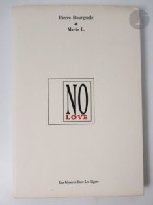 BOURGEADE (Pierre) - MARIE L. No Love. Paris : Librairie Entre Les Lignes, [2000]. —In-8, …
