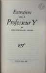 CÉLINE (Louis-Ferdinand). Entretiens avec le Professeur Y. Paris : Gallimard, [1955]. —In-12, broché. Édition originale. Un des 85 exemplaires sur vélin pur fil, celui-ci non numéroté. Exemplaire très bien conservé.