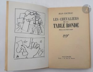 COCTEAU (Jean). Les Chevaliers de la table ronde. Pièce en trois actes. Paris : Gallimard, [1937]. —In-12, broché, couverture rempliée. Édition originale. UN DES 9 EXEMPLAIRES SUR JAPON IMPÉRIAL DES PAPETERIES RENAUD TEXIER, second papier après 6 exemplaires sur papier de Chine. Exemplaire parfaitement conservé.