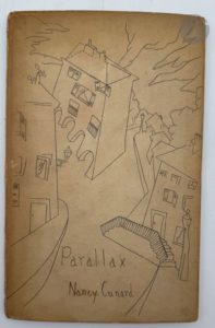CUNARD (Nancy). Parallax. London : Leonard et Virginia Woolf, The Hogarth Press, 1925. —In-8, …