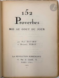 ÉLUARD (Paul) - PÉRET (Benjamin). 152 Proverbes mis au goût du jour. Paris : La Révolution …