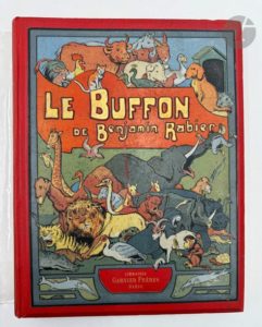 ENFANTINA. Ensemble de 6 albums pour enfant : - BAUER (Henry). Les Aventures de Mr Quart-de-Cervelle. Tome I. Strasbourg : imprimerie Alsacienne, 1947. —In-4 oblong, cartonnage illustré de l'éditeur, à dos de toile bleue. Nouvelle édition du premier tome paru pour la première fois en 1935. Illustrations de Prosper Rotgé. Quelques minimes salissures au cartonnage, sinon exemplaire très bien conservé. - MONTORGUEIL (Georges) - JOB. La Tour d'Auvergne. Premier Grenadier de France. Paris : Combet & Cie, 1902. — Grand in-4, cartonnage illustré de l'éditeur. Quelques minimes griffures sinon exemplaire très bien conservé. Tous les feuillets sont montés sur onglets. - MONTORGUEIL (Georges) - JOB. Louis XI. Paris : Boivin & Cie, [1905]. —Grand in-4, cartonnage illustré de l'éditeur. Bel exemplaire n'ayant que quelques minimes griffures sans gravité. Tous les feuillets sont montés sur onglets. - RABIER (Benjamin) - BUFFON. Le Buffon de Benjamin Rabier. Paris : Librairie Garnier frères, [1913]. — In-4, cartonnage polychrome de l'éditeur. Premier tirage des illustrations de Benjamin Rabier. Griffure au centre du premier plat du cartonnage, quelques salissures. Parfait état intérieur. - RABIER (Benjamin) - FLORIAN. Fables. Paris : Librairie Garnier frères, [1936]. —In-4, cartonnage illustré de l'éditeur, à dos de toile rouge. Bel album entièrement illustré par Benjamin RABIER. Les illustrations sont ici en premier tirage. Exemplaire dans un très bel état de fraîcheur, malgré les coins légèrement émoussés. - TOUDOUZE (Gustave) - LELOIR (Maurice). Le Roy soleil. Paris : Boivin & Cie, 1917. —Grand in-4, cartonnage illustré de l'éditeur (Engel). Nouvelle édition de cet album illustré par Maurice Leloir. Minimes usures au cartonnage.