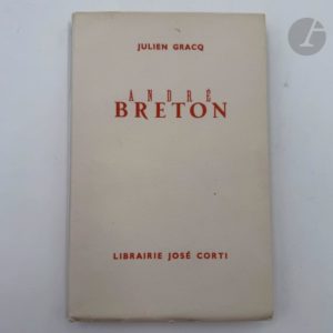 GRACQ (Julien). André Breton. Quelques aspects de l'écrivain avec un portrait d'André Breton par Hans Bellmer. Paris : Librairie José Corti, 1948. —In-12, broché, couverture rempliée. Édition originale. Un des 50 exemplaires numérotés sur papier pur fil Lafuma, seul grand papier après 20 exemplaires sur vélin du Marais. Dos très légèrement éclairci.