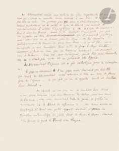 SACHS (Maurice). Manuscrit autographe de trois historiettes comiques. Ensemble de trois courtes historiettes autographes inédites de Maurice Sachs : - Courte nouvelle, 1 page in-4, racontant l'ascension sociale de Mr Blumenthal trompé par son nom d'emprunt « Blunt ». - Les noms, 1/4 de page in-4, drôleries sur des noms de familles : « On m'a parlé d'un jeune homme qui riait fort des noms ridicules et qui trouvait amusant que Mr Connart Desclosettes eut épousé Melle Dewattair… » - Histoire drôle, 1/2 page in-8 : « On jouait au bridge chez Mme Lapisse devenue Comtesse d'Obidos. L'un dit : je passe. L'autre : je passe. Un autre : je passe. Je pisse dit le quatrième. »