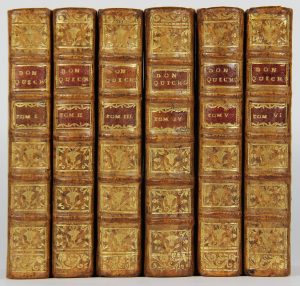 CERVANTES. HISTOIRE DE L’ADMIRABLE DON QUICHOTTE DE LA MANCHE. Paris, David, 1754. 6 volumes in-12, basane marbrée, dos à nerfs orné (Reliure de l’époque)