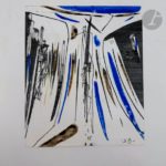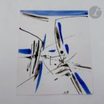 BALTAZAR (Julius) - MIZON (Luis). Barbes du vent. [Xonrupt-Longemer] : Æncrages & Co, 1997. —In-8, broché, couverture rempliée. Édition originale illustrée de 6 compositions à l'encre noir de Julius BALTAZAR (né en 1949), reproduites à pleine page. UN DES 30 EXEMPLAIRES DE TÊTES NUMÉROTÉS ET SIGNÉS PAR L'AUTEUR ET L'ARTISTE, ENRICHIS DE DEUX ENCRES ORIGINALES EN COULEURS DE BALTAZAR, le première sur le couverture non signée et la seconde hors texte, paraphée au recto et signée au verso. Exemplaire enrichi d'une troisième encre originale hors texte signée de l'artiste et de cet envoi autographe signé de l'auteur sur le faux titre : «Pour Jackes // en souvenir de sa première // visite au bateau de la rue des pyramides // ou il y aura la place du 2eme comandant // avec beaucoup d'amitié. // Luis // Paris 17-IV-98. » Exemplaire très bien conservé.