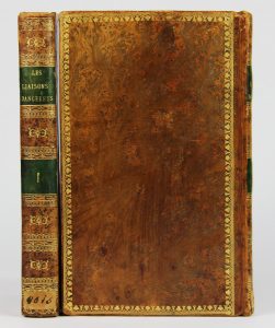 Belle contrefaçon réalisée en 1812 sur celle de 1796, et ornée de 2 frontispices et de 13 fines planches par Monnet, Mlle Gérard et Fragonard fils, chacune protégée par un carré de papier de soie, non légendé. Petits défauts sans gravité aux reliures. (Cohen, 113).