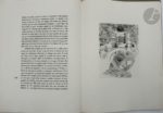 BEAUVOIR (Hélène de) - BEAUVOIR (Simone de). La Femme rompue. Paris : Gallimard, [1967]. —In-folio, en feuilles, couverture rempliée, chemise et étui de l'éditeur. Édition originale tirée à 143 exemplaires, illustrée de 16 burins originaux à pleine page de la peintre Hélène de BEAUVOIR (1910-2001) sœur de la romancière. Un des 107 exemplaires sur vélin pur chiffon des Papeteries de Lana, très bien conservé. Quelques rousseurs éparses.